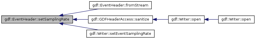 Here is the caller graph for this function:| void gdf::EventHeader::setSamplingRate | ( | float32 | fs | ) |